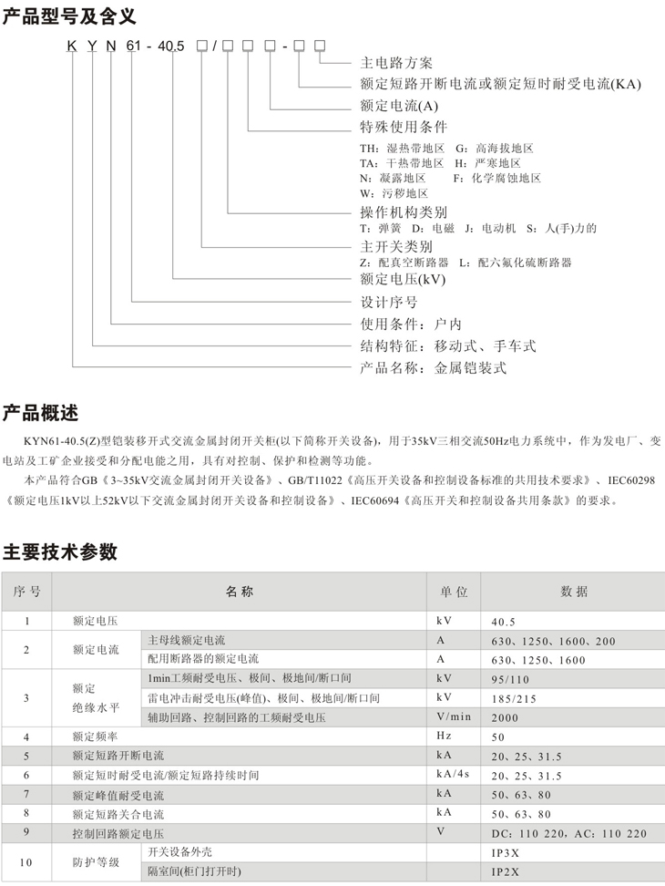 KYN61-40.5型铠装移开式交流金属封闭开关柜