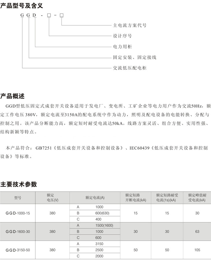 GGD型低压固定式成套开关设备
