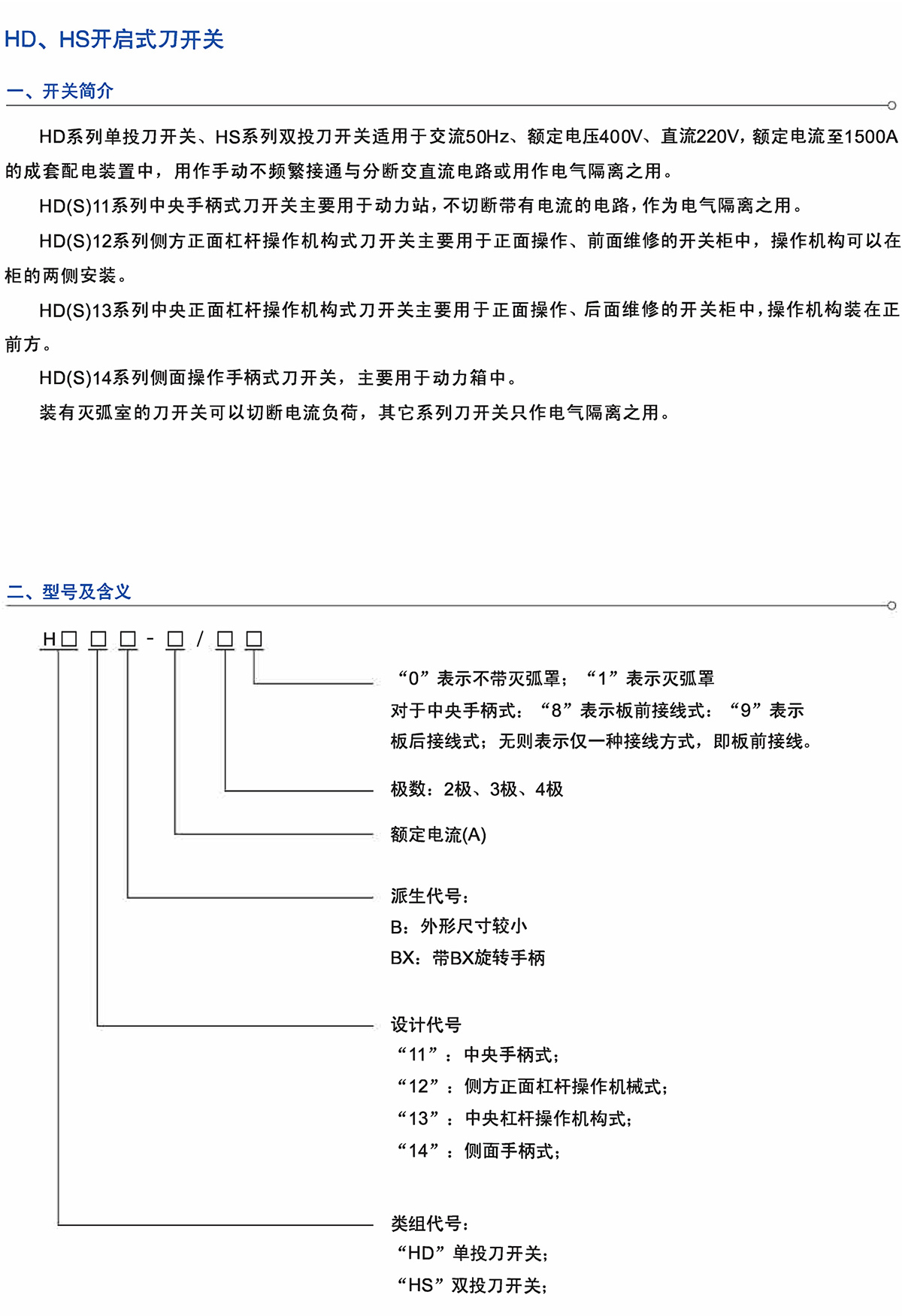 HD HS开启式刀开关