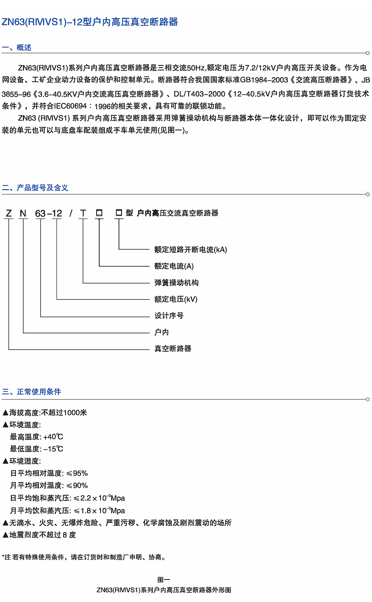 ZN63(RIVIVS1)-12型户内高压真空断路器