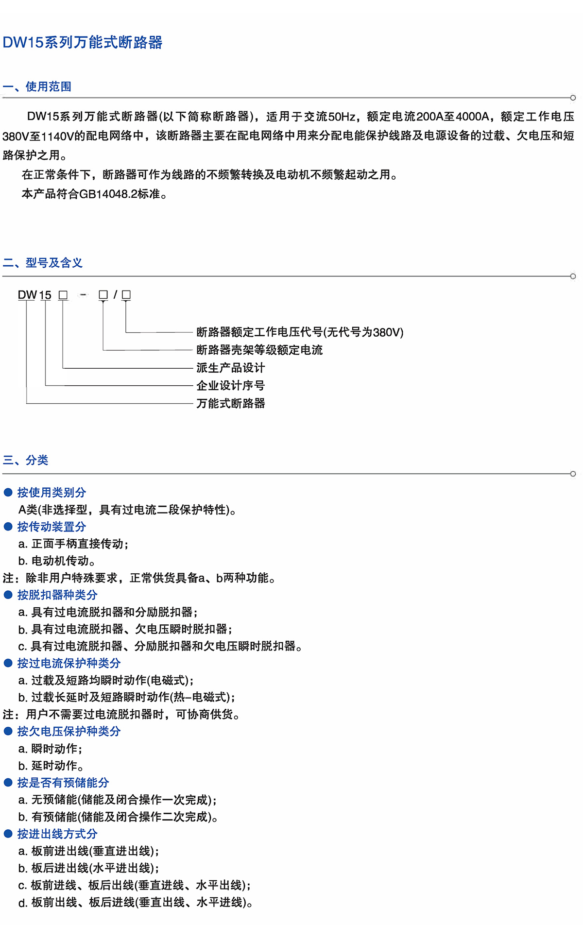 DW15系列万能式断路器