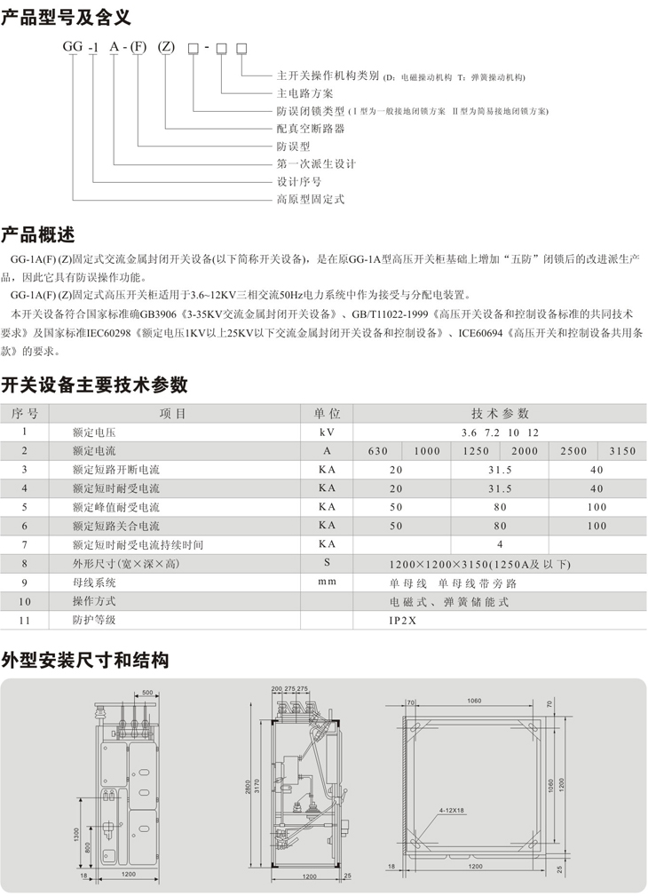 GG-1A(F)(Z)型固定式交流金属封闭开关设备