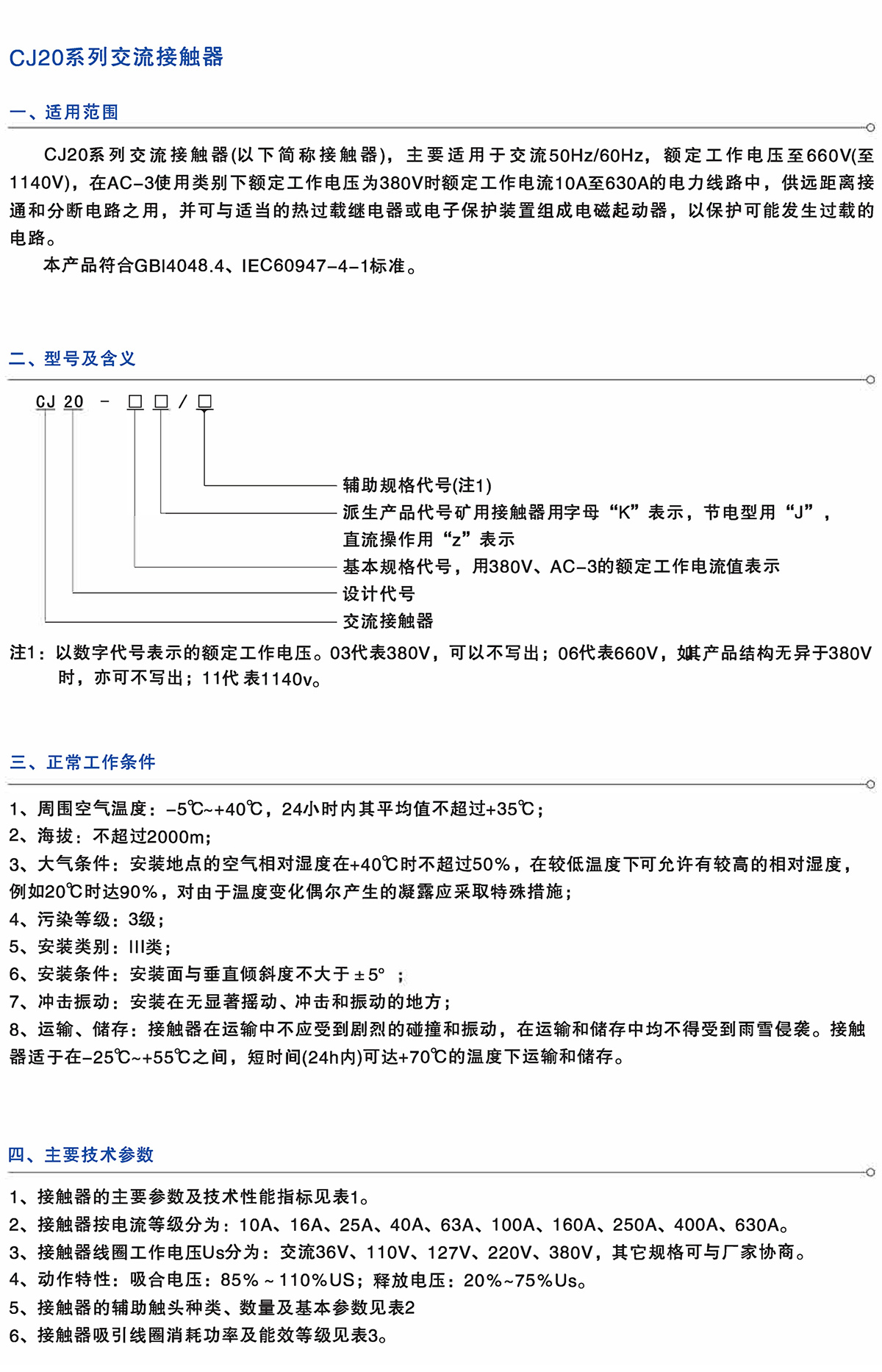 CJ20系列交流接触器