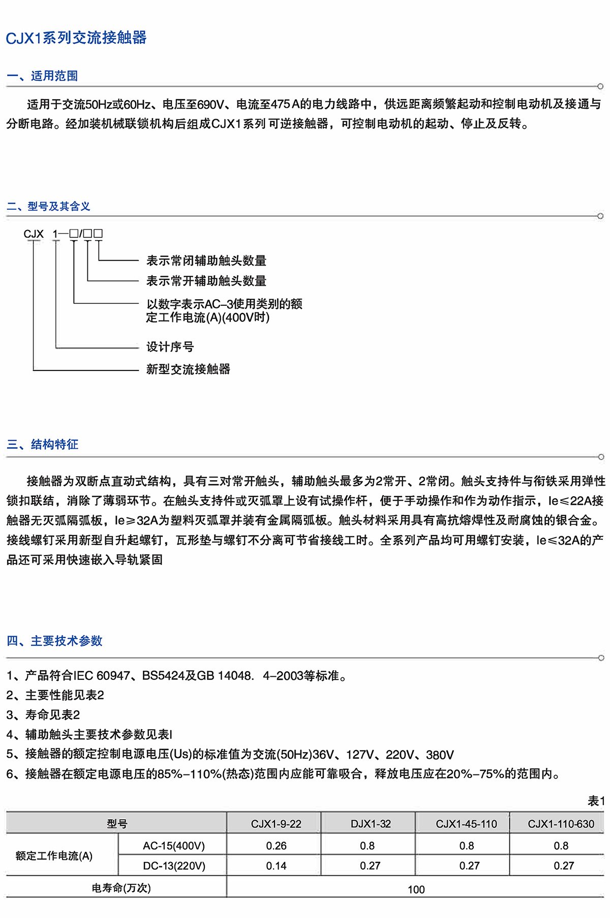 CJX1系列交流接触器