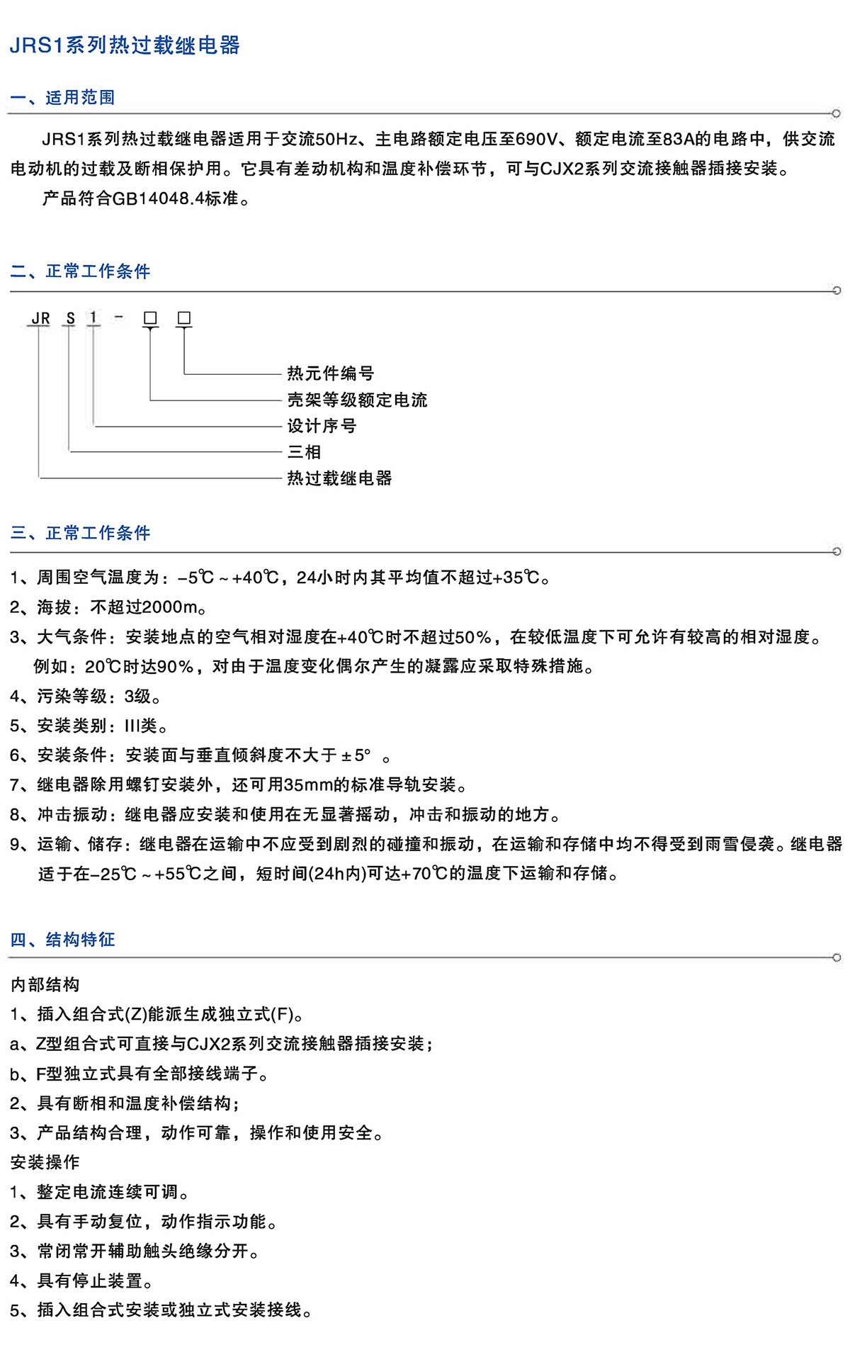JRS1系列热过载继电器