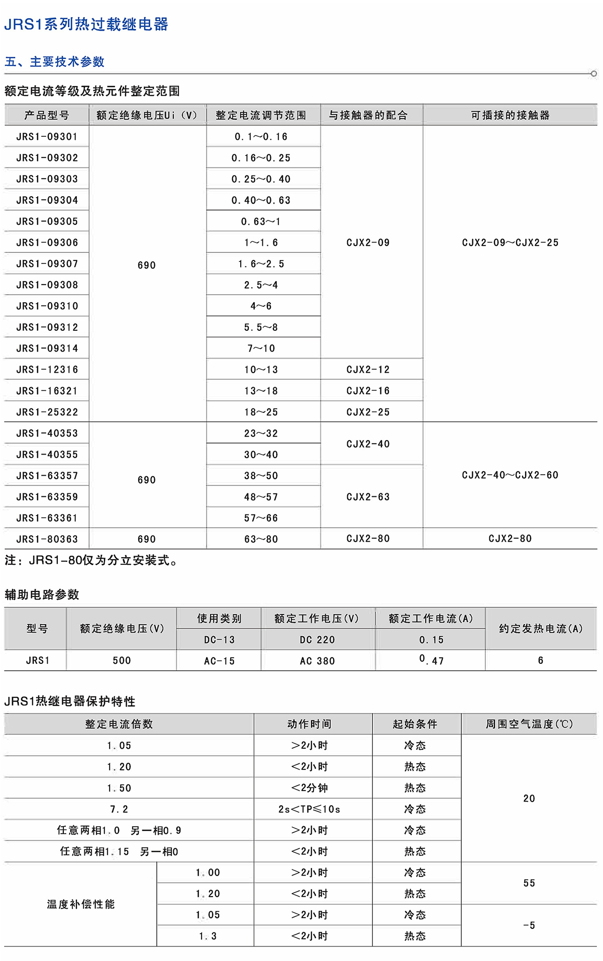 JR20系列双金属片热过载继电器