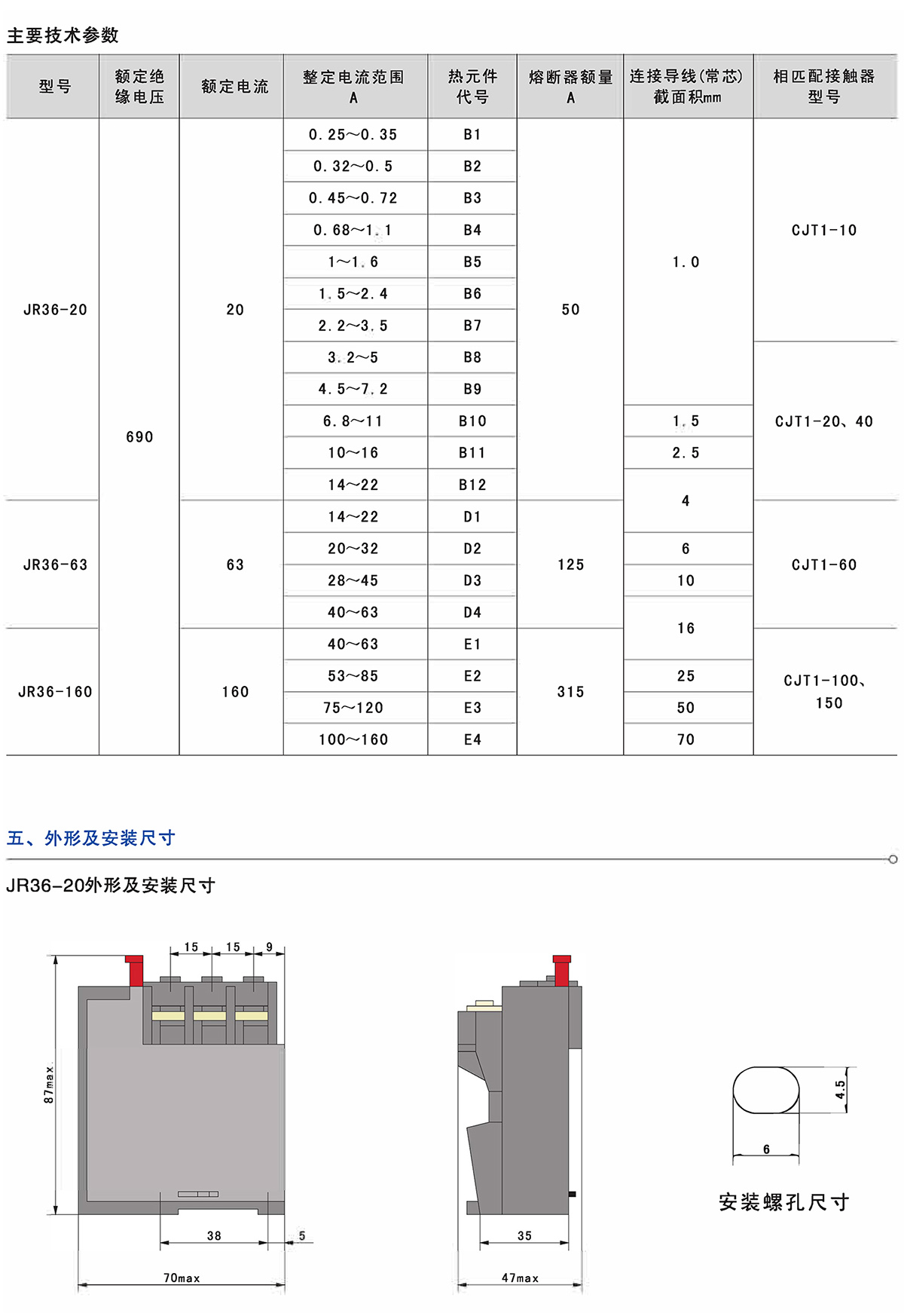 JR20系列双金属片热过载继电器