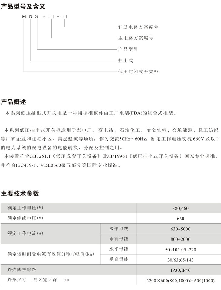 MNS型低压抽出式开关柜